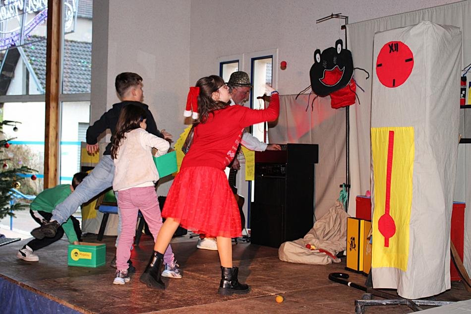 Ce dimanche, vous n'avez pas hésité à affronter le mauvais temps pour venir accueillir Saint-Nicolas et assister au spectacle que nous vous avions réservé. Cette année, vous êtes venus nombreux et tous les enfants étaient heureux de monter sur l'estrade pour participer à la fête avec "Mélasse" qui animait ce bel aprés-midi.